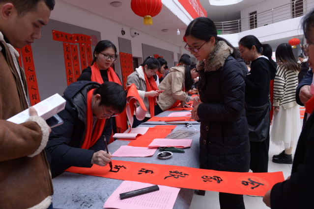 据悉,活动持续到下午6点才结束,共为教职工书写对联1600余幅。这也是beat365官网连续第二年在岁末年初开展此项活动。