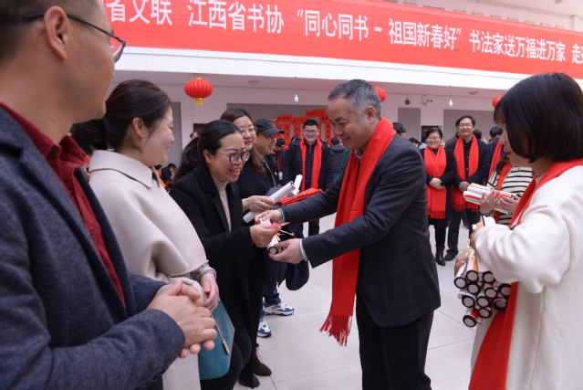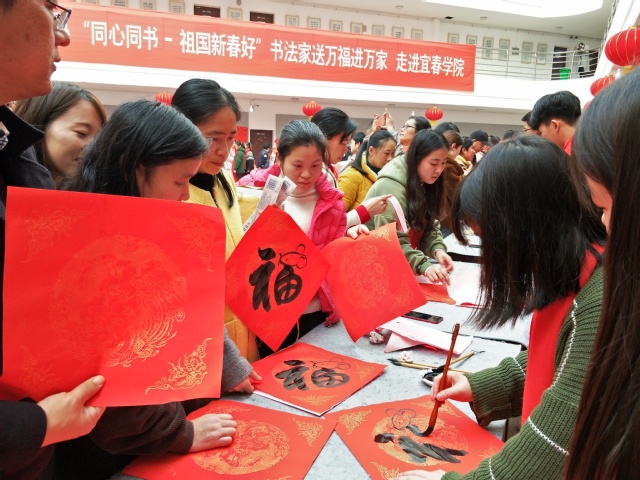 现场,不仅有书法学院的师生们挥毫泼墨,更有爱好书法的教职工们也一同书写对新年的祝愿,退休教职工也纷纷加入进来,脸上洋溢着节日的笑容一派喜气洋洋、温馨气象。校领导们为广大教职工送“福”字将活动推向了高潮。