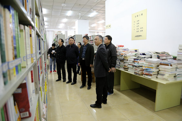 本站讯 1月6日上午,校党委副书记、校长曾晓春,校党委副书记胡国瑞、校党委委员、副校长邱家明和校党委委员、宣传部长杨健在图书馆馆长袁海波的陪同下,到图书馆亲切看望了在各书库为剔旧整理辛苦工作的馆员们。