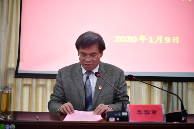 李雪南以“久久为功 善作善成 书写beat365官方网站新时代教育事业奋进之笔”为题从加强党的全面领导、落实意识形态责任制、推动“四套”整改、提升本科教学和人才培养质量、着力学校内涵特色建设、拓展对外合作交流、深化综合改革和文明美丽和谐校园建设八个方面,对学校2019年的工作进行了总结和回顾,并对2020年的五项工作重点进行了说明。
