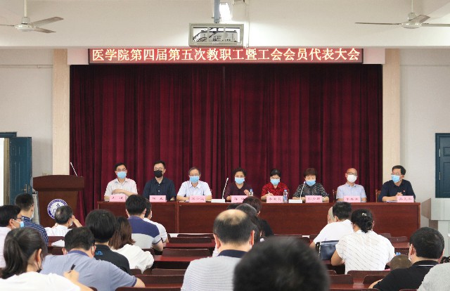 本站讯(学生通讯员陈霖)5月29日下午,医学院在逸夫科技楼N401召开医学院第四届第五次教职工暨工会会员代表大会。校党委委员、副校长蒋钰、校工会主席李菊花到大会指导,医学院院领导班子成员、医学院教职工100余人参加会议,会议由院党委书记彭少君主持。