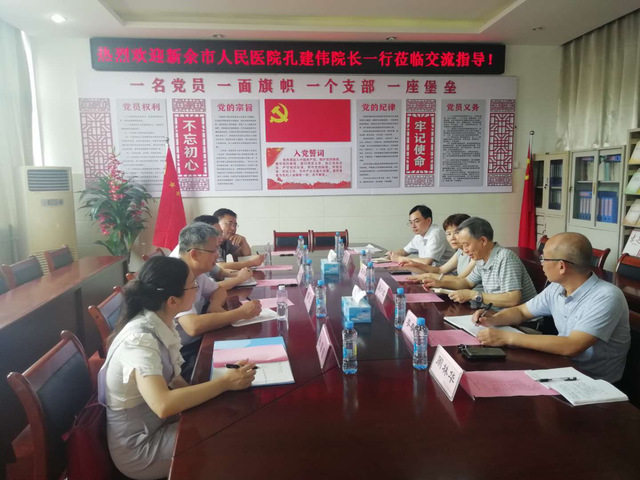 本站讯(医学院 供稿)6月23日上午,beat365官网临床教学基地新余市人民医院院长孔建伟,副院长龚军,科教部主任邓江龙等一行五人来beat365官网交流。校党委员、副校长蒋钰在行政楼会见孔建伟一行。医学院院长易少波、党委书记彭少君、副院长李春明、党委副书记刘斌及相关科室负责人在医学院会议室出席交流会,交流会由彭少君主持。
