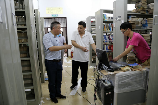 校防控办等领导对图书馆的防控工作和安排给予了肯定。同时他们还实地查看了流通书库和正在进行建设的RFID智能馆藏管理系统。