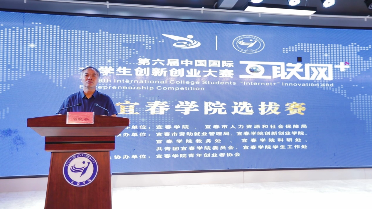 宜春市委组织部副部长、市人社局党组书记、局长梅鸣对举办此次大赛表示热烈的祝贺,他嘱托当代大学生,创业是当代大学生肩负的时代责任和使命,宜春是一方创新创业的热土,希望当代大学生在创新创业的时代浪潮中踏浪前行,敢闯敢拼,在创业中发展,在创新中成才,书写人生绚丽的篇章。