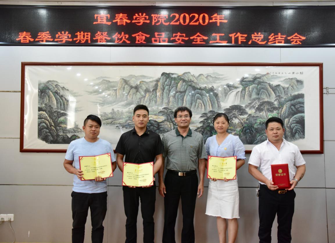 会上还宣读了2020年上半年学校餐饮食品安全疫情防控工作优秀店长(经理)名单,李雪南向获得表彰的四位店长(经理)颁发荣誉证书并合影留念。