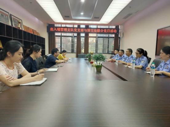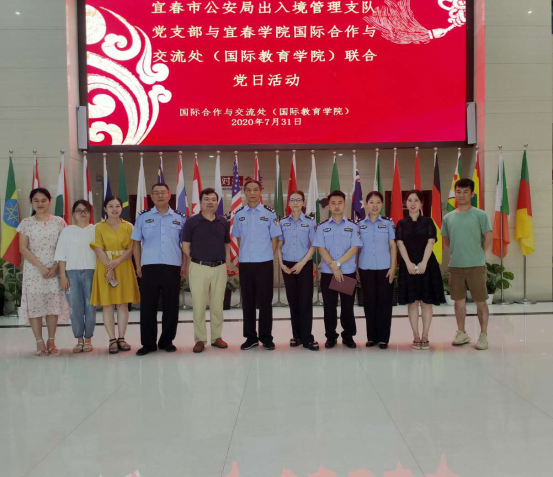 7月31日下午,宜春市出入境管理支队党支部政委廖永忠一行5人与国际合作交流处党支部在beat365官方网站开展了联合党日活动。