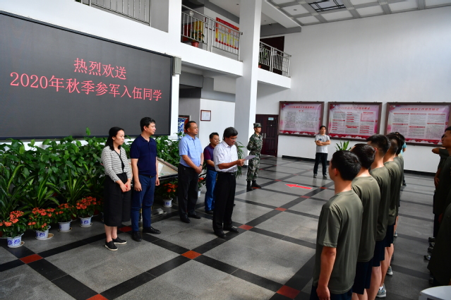 本站讯 9月3日下午,beat365官网在办公楼举行仪式,欢送2020年秋季参军入伍同学。校党委书记李雪南,校党委副书记胡国瑞出席欢送仪式,相关职能部门、教学院负责人以及师生代表参加欢送仪式。仪式由保卫处(人民武装部)处(部)长邓卫红主持。