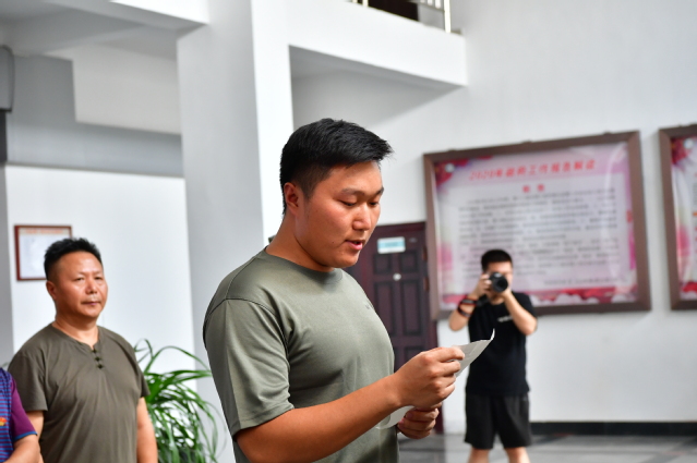 仪式上,胡国瑞宣读了此次参军入伍的同学名单。体育学院赵伟同学代表此次参军入伍同学作了发言。