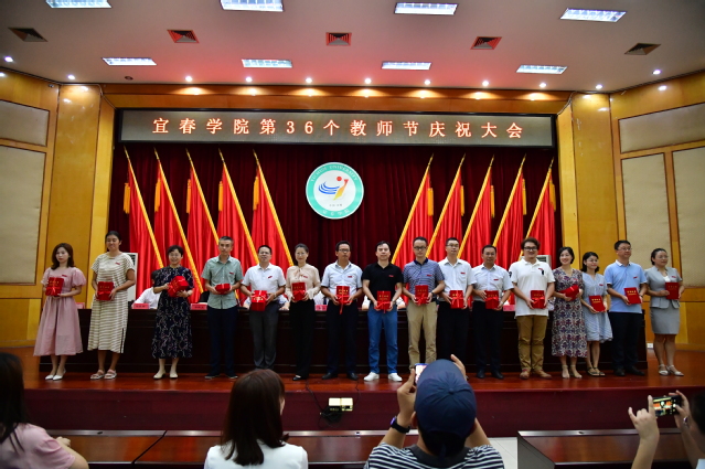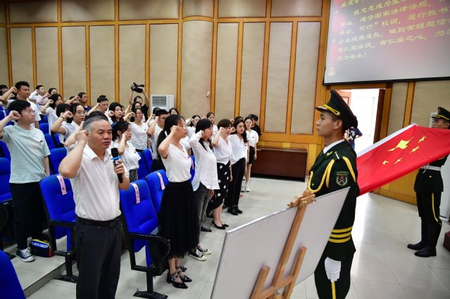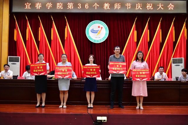 表彰大会在庄严的国歌声中开始。副校长梅光泉宣读了表彰决定;校领导为第四届江西省青年教师教学竞赛获奖者等颁发了荣誉证书。新进教师在会场面对国旗宣誓。