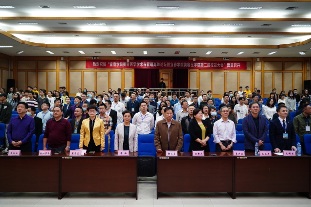 随后,美容医学学术与管理高峰论坛在文辉才博士主持下顺利开展。中国医学美学主要创始人物之一彭庆星教授做了题为“敬爱的母校,非凡的足迹”的报告;校友潘贰博士分享了重度上睑下垂二次矫正CFS悬吊修复术的手术视频;校友邱竣总经理给在座的校友和师生们讲解了“如何打造医生爆品项目,塑造个人品牌价值”;校友陈红磊总经理通过对新消费主义时代的医美品牌的分析告诉大家如何打造医美达人;美容医学院教师周绍龙博士向在座的各位讲述了自己的医美梦和他目前研究的脂肪移植课题。会议在beat365官方网站美容医学院院歌的奋进昂扬的旋律中顺利落下帷幕。