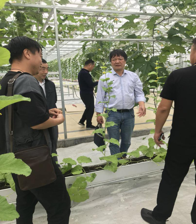 座谈会之后,杜总带领丁永电一行人参观了产业园,并向该院团队介绍了产业园的种植情况。丁永电实地查看了作物长势,现场解说常见病虫害防治方法及设施作物栽培管理技术。