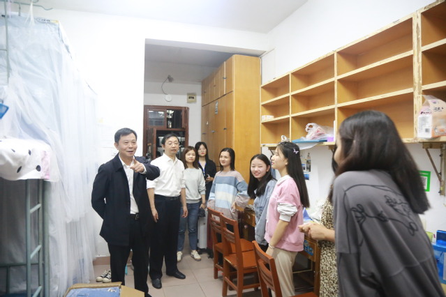 本站讯(学生记者 周丹张梦瑶)为及时了解新生状态,进一步做好新生入学教育活动,增强新生对校园的归属感,加快新生适应大学生活,9月25号晚,副校长罗政在政法学院领导班子和新生辅导员的陪同下,前往学生宿舍看望慰问2020级新生,传达学校的关心与问候,鼓励他们尽快适应大学生活,开启新征程。