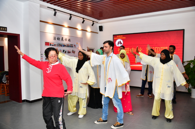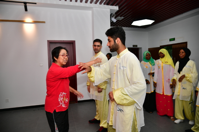 在现场,宜春市太极拳协会杨利老师带领留学生们体验太极拳。杨老师介绍了太极拳相关知识,并进行拳法展示,留学生每招每式都学得有模有样。来自巴基斯坦的Ameer意犹未尽,他认为,中华武术博大精深,凝聚着中华文明的独特魅力。