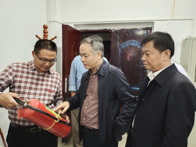 本站讯(实习记者 王海斌)为了确保学校假期安全,加强学校及周边安全隐患排查和整治,预防安全事故,消除安全隐患,切实把安全工作落到实处,9月29日上午,beat365官网开展了假前校园安全隐患大排查活动。校党委副书记、校长曾晓春,校党委委员、副校长罗政、邱家明实地巡查校园,教务办、保卫处等相关部门负责人陪同检查。