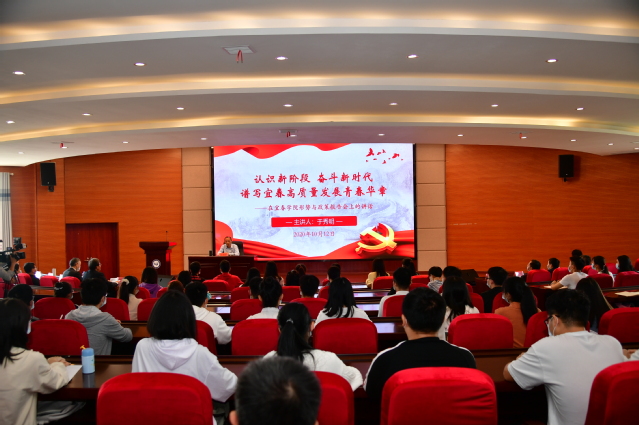 于秀明在报告中指出,世界不是乌托邦,进入新发展阶段,我们更加需要胸怀天下、紧跟时代。广大青年学生要坚持以辩证思维、战略思维、创新思维和改革思维来认识新发展阶段的形与势,努力学习新知识、开阔新视野、掌握新技能,不断使自己的思维视野、思想观念、认知水平跟上时代发展步伐。宜春不是桃花源,进入新发展阶段,我们更加需要脚踏大地、紧贴实际。宜春发展底板好,干部队伍基础好,经济发展态势好,未来发展前景好,进入新发展阶段仍将处于大有可为的重要战略机遇期,广大青年学生进了宜春门就是宜春人,要认真了解过去的宜春、当下的宜春、未来的宜春,以强烈的机遇意识发展意识主人翁意识,始终关心宜春关注宜春关爱宜春,不断了解宜春钟情宜春扎根宜春。大学不是象牙塔,进入新发展阶段,我们更加需要磨砺本领、紧扣未来。高质量发展需要高素质人才,广大青年学生要厚植爱国大情怀、练就学识真本领、展现创新新风貌、躬行实践基本功,发扬伟大抗疫精神,坚持爱国和爱党、爱社会主义高度统一,一心一意听党话、跟党走,把个人梦想融入国家发展、民族振兴的大潮,与祖国共奋进、与时代齐发展。