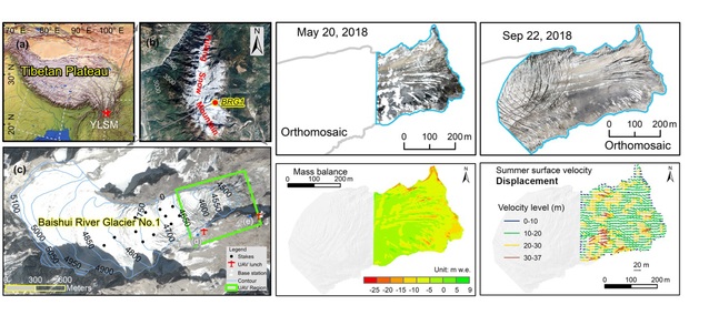 气候变暖已是不争的事实,冰川作为气候变化的天然指示器,对气候变化异常敏感。选取特定冰川作为参照冰川,开展长期定位观测,是理解气候与冰川作用过程的关键。但冰川观测需要耗费大量人力、财力等限制,可长期监测冰川极少,尤其是藏东南海洋型冰川,冰面存在大量表碛、冰裂隙等冰崖等复杂地形,对观测人员人身安全构成很大威胁,使得该区域长期以来观测数据缺乏,冰川物质亏损和运动特征机理不清。基于次,本研究在白水河1号冰川消融区,开展无人机重复测量试验,获取表碛覆盖区空间分辨率优于0.10 m的正射影像和DEMs数据,通过空间分析,表明2018年表碛覆盖区夏季冰面高程平均下降6.58±3.70 m,物质平衡(亏损)为-5.92±3.33 m w.e.。此外,通过影像自动跟踪对比技术,获取了冰面形变特征,发现冰川夏季每天的平均流速为0.14±0.05 m/d。