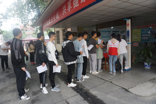 9月25日上午,跟随辅导员助理,新生们陆续来到校医院门口开始体检。据校医院工作人员介绍,本次体检项目包括:测量身高、体重、抽血、测血压等常规检查。在该校红十字会志愿者向新生介绍体检项目点后,新生们排着队依次进行各个项目测试。医务人员恪尽职守,仔细核对新生信息,对他们进行认真细致的检查,并提出合理的建议:大学生在好好学习的同时要注重身体健康,加强日常的锻炼,形成合理的作息习惯。