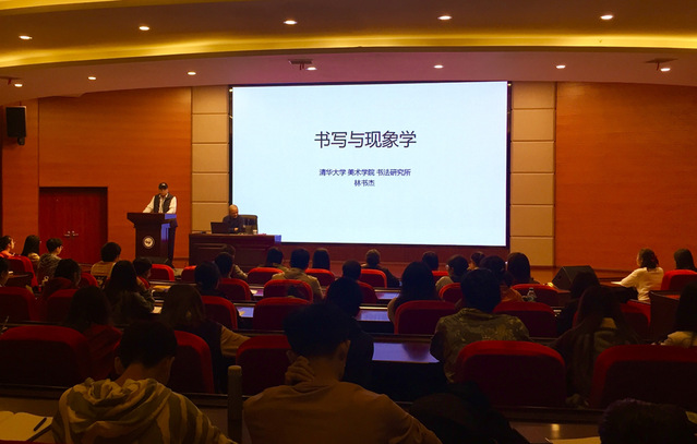 本站讯(书法艺术学院供稿)10月22日,清华大学书法研究所林书杰博士应邀来书法艺术学院做题为《书写与现象学》的讲座。书法艺术学院全体师生参加,讲座由该院院长梁敏主持。