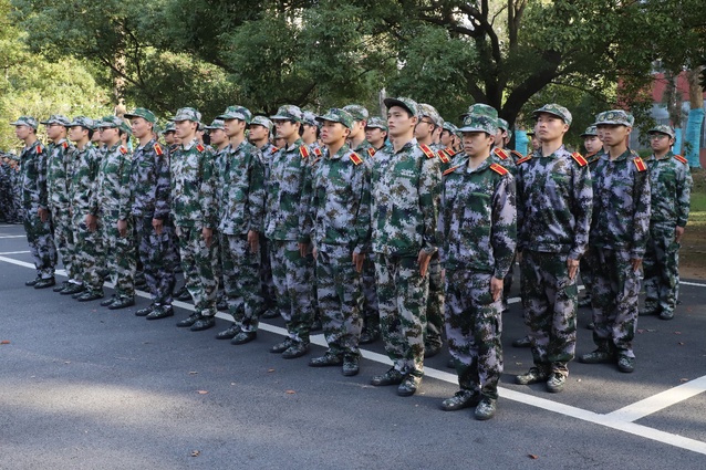 本站讯(理工学院 曾静 张子轩)微风逐秋色,紫烟起沁湖,遍地戎装绿,青春正当时。激情十月,2020级新生迎来了大学的必修课——军训。