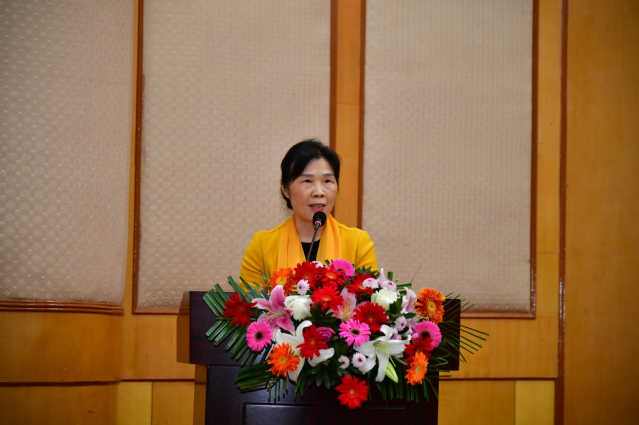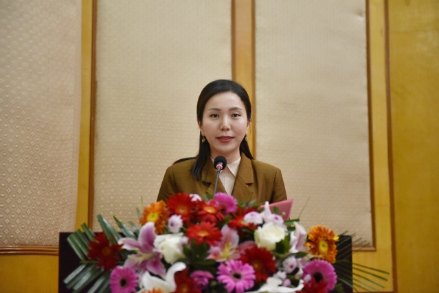 校工会主席李菊花同志代表人民团体向大会致辞。