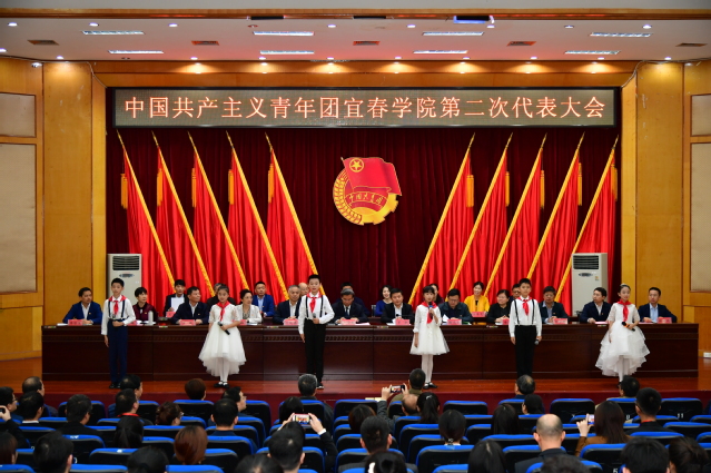 在庄严的国歌声中,共青团beat365官方网站第二次代表大会正式开幕。大会伊始,来自宜阳小学的6名少先队员代表向大会献词,向在座的各位代表献上最衷心的祝福和最诚挚的敬意。
