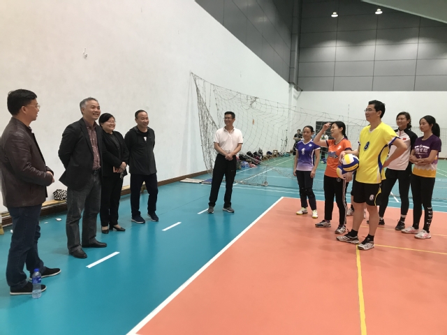 本站讯(校工会 供稿)10月26日,校党委副书记、校长曾晓春,校党委委员、副校长、校体委主任余新卫到校本部排球馆看望备战全国教科文卫体系统教职工气排球比赛教职工,体育学院院长龙建新,工会副主席段军平介绍了比赛和训练情况。