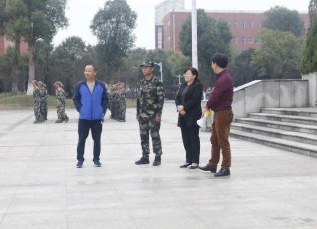 本站讯(体育学院供稿)10月29日,校党委委员、副校长余新卫,保卫处处长邓卫红和体育学院院长龙建新一行深入军训场地视察军训工作开展情况,慰问教官,看望参训学生。