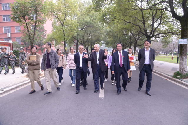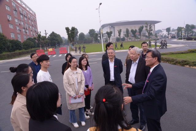 颁奖结束后,在李雪南和曾晓春的陪同下,丁健院士带领获奖学生一同参观校园,在校园、沁湖交流合影,随后在学校大学生创新创业中心参观,丁健院士赞扬大学生众多的创新发明。