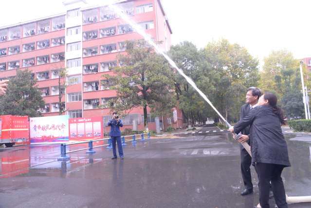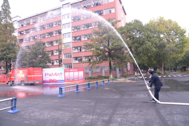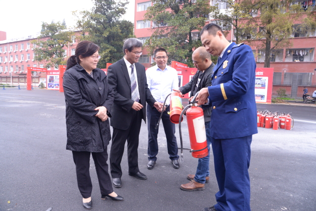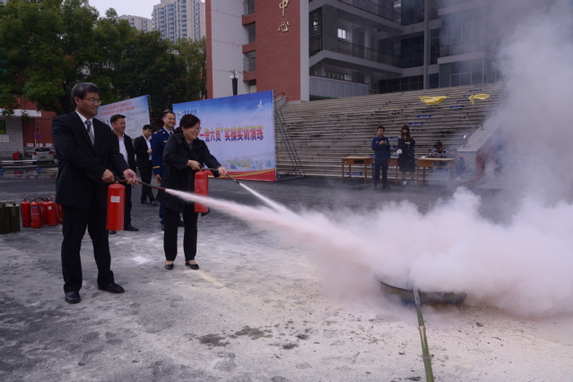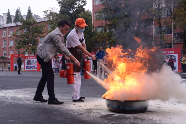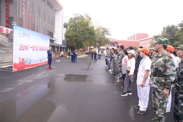 本站讯(记者 袁璐)为深入开展消防安全教育活动,增强师生消防安全意识,提高消防安全“四个能力”建设,11月2日,beat365官网在大学生活动中心广场举行“一警六员”实操实训演练,校党委书记李雪南,校党委委员、副校长余新卫参与演练;各教学院、校属各部门(单位)综治联络员,各教学院新生寝室长,安保和食堂从业人员近百人参加了演练。