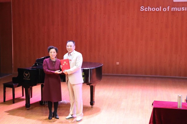讲座开始之前,刘峰向同学们介绍了胡宜拉教授的荣誉与成就。随后,蒋钰为胡宜拉教授颁发beat365官方网站客座教授聘书。接着,胡宜拉教授以“艺术人生和音乐作品欣赏”为主题,向同学们分享艺术来源于生活、来源于实践的经验。讲座中,胡宜拉教授为同学们讲述了自己第一次接触音乐、了解音乐以及学习音乐的经历,讲到踏入职场后凭借音乐技能而受到赏识,并以此告诫同学们对待学习要不忘初心,在大学要学好专业知识技能,把优势发挥出来。胡宜拉教授也与同学们分享了四首原创作品《一弯新月》《网格员》《深爱着你》《选择》,讲述作品背后的故事。其中公益歌曲《网格员》是胡教授受邀为宜春市委政法委作词作曲,正因自己早年间基层工作的经历,才能体会到基层工作者的辛苦,一首《网格员》表达了胡宜拉教授对基层工作者的无私奉献的敬佩之情。