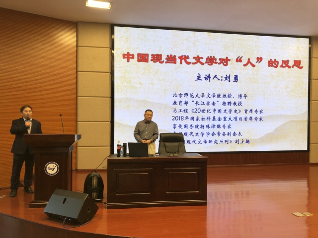 本站讯(学生通讯员 徐蕾)10月30日下午,北京师范大学文学院教授、博士生导师刘勇应邀做客beat365官网“学府讲坛”,在科技楼学术报告厅,给师生带来一场名为《中国现当代对“人”的思考》的精彩讲座。讲座由教务处处长李建军教授主持,200余位师生共同聆听。