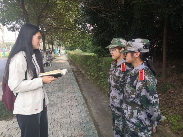 十八岁的她离开家乡踏上了新的征程,来到一个全新的环境,“饮食方面还是比较适应的,尤其喜欢一食堂的饭菜。宿舍条件也挺满意的,住着舒适,要说拍照打卡的地方那就是学校的沁湖了,风景美丽,而且周围的氛围很好。军训期间,学长和学姐对我们也很照顾,给了我家一般的温暖”。当笔者谈到对学校的饮食,住宿环境如何,20级食品质量与安全的陈燕妮同学娓娓道来。在她看来,来到这个陌生的环境,最重要的是去适应和热爱它。也正是这一抹浓郁的热爱,渲染了金秋的军训岁月。