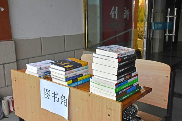 军训图书角“营业”第一天就吸引了许多新生的关注。免训学生把图书角作为自己的军训大本营,他们在图书角找到了自己的精神世界一呆便是半天。除了免训学生,更有新生趁着军训休息片刻的时间来到图书角,就像是约好了一样,在这个图书角会合、看书、聊天。