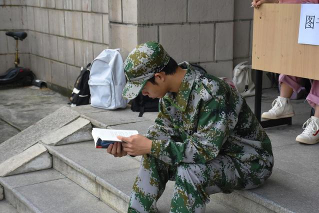 “我想让不能正常参训的新生度过一个充实的军训。”军训图书角发起人余心怡说,“身体状况我们无法把控,但是我不想让这些免训学生在军训场地虚度这将近半个月的军训时间。沁湖旁考研学子勤奋的模样使我触动,于是,我设立了这个军训图书角。”