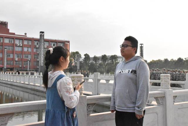 在面对学生记者的采访中他提到,大学的军训与想象中是不同的,不仅有温暖的补给站,还有老师同学的关心,自己虽不能参与训练,却收获了来着大家庭中满满的爱,他也十分珍惜与同学们的相处,关注同学们的动态,为其他同学提供力所能及的帮助,这也是一种对自己的“军训”。此外,在问及对同学们有什么鼓励时,他说道:“放弃不难,但坚持一定很酷,希望我们能够共同坚持到底,让这段时光变成我们独特珍贵、永远怀念的青春回忆”。