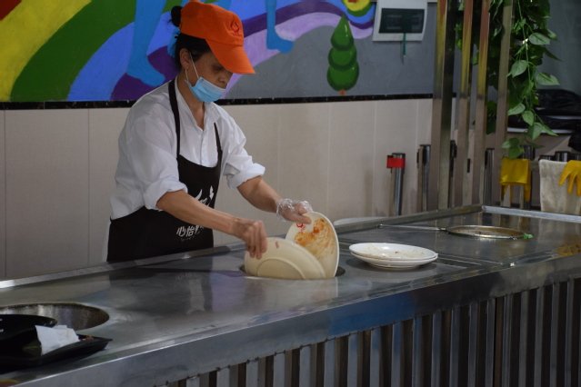 “兵马未动,粮草先行”是自古以来的兵家道理,同样,新生们的日常训练也少不了食堂的默默支持。据笔者了解,为保证新生在军训期间可以获得足够营养、热气腾腾的饭菜,拥有良好的就餐环境,食堂的工作人员每天早上五点就开始了他们的工作,整理桌椅,擦拭地面,清洗配菜……中午就餐时,穿着白色工作服的工作人员穿梭在桌椅之间,当有新生用完餐后,总是第一时间出现清扫桌面。食堂工作人员的尽职尽责,让新生们感受到了家的温暖,白色的身影是食堂中最美的风景!