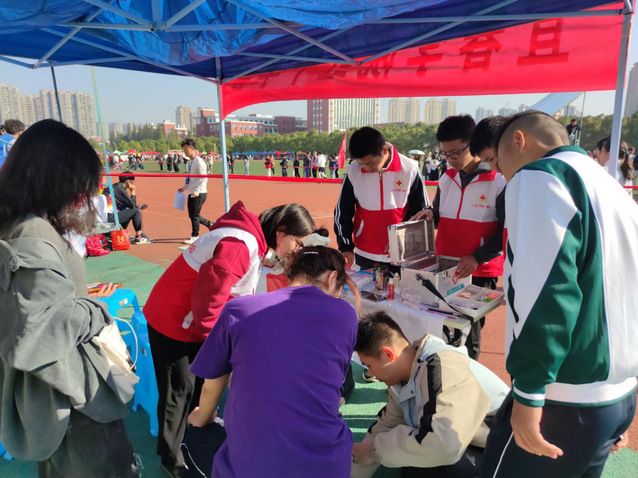 为了确保运动会的顺利举行,他们始终坚守在了运动场上的医疗服务点,时刻准备应对意外情况的发生。据了解,在运动会前期校红十字协会开展过多次医疗培训活动,讲授了一些关于如何紧急处理突发事故的相关知识。洁净的白色马甲、完备的医疗用品,医护人员亲切的笑容成了运动场上的一方温柔。尽力帮助运动员,收获喜悦与满足,看到伤者脸上的笑容,疼痛的缓解,所有的辛苦都值得。没有喝彩,没有掌声,白色的身影展现出白衣天使的风貌。