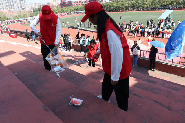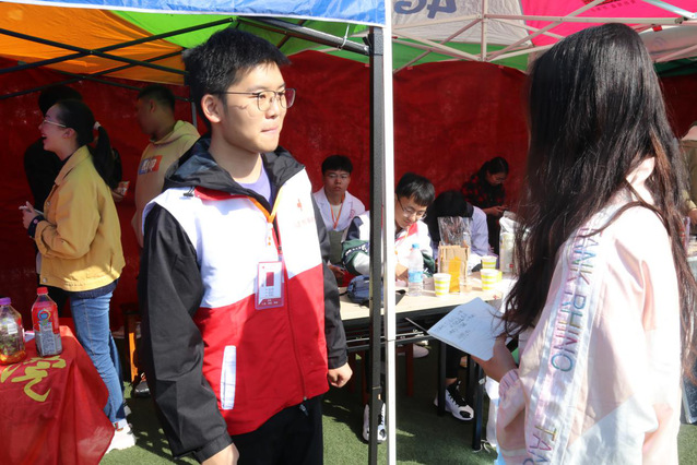 赛场上,运动员们奋力拼搏、竞技角逐。赛场下,校运志愿者们身着红色小马甲,默默无闻为运动员提供服务,挥洒不一样的青春。