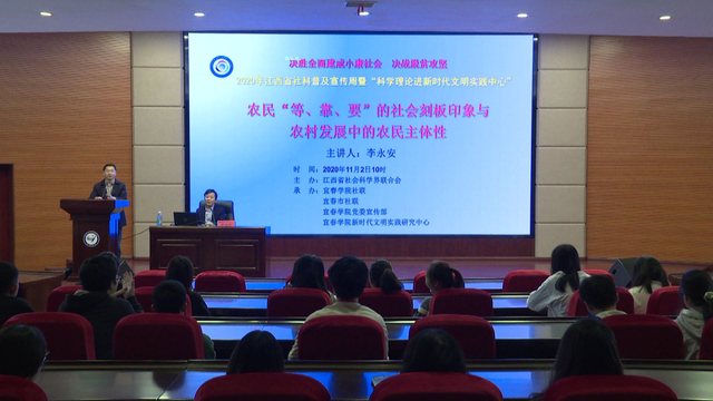 本站讯(科研处 供稿)近日,由省委宣传部、省社联联合主办,beat365官方网站承办的2020年江西省社科普及宣传周暨“科学理论进新时代文明实践中心”活动在beat365官方网站科技楼第二学术报告厅举行。此次活动的主题为:决胜全面建成小康社会,决战脱贫攻坚,beat365官方网站副教授李永安博士应邀做了精彩的学术报告。学校近百名师生代表参加了此次报告,报告由科研处处长陈荣庆教授主持。