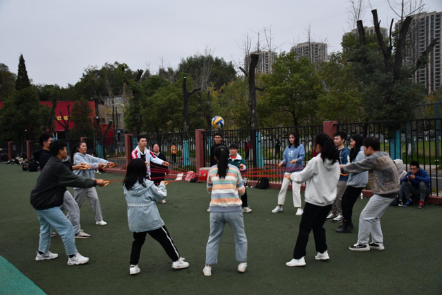 “稳住!稳住!保持平衡!”队员们迈着一致的步伐,绷紧手中的绳索,专注于排球的一起一落。球落鼓面的每一次敲击声,都让队员间悬着的心落下来,手中拉紧的绳子将所有人的心拴在一起。数计学院20网工班丁媛说到:“同心鼓特别考验我们的团结合作精神,它让我们十几个人的心连在了一起。在我看来,输赢已经不重要了,所有队员协同作战才是最难能可贵的,能够代表院里参加这个团体项目,我感到十分骄傲。”