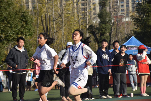 11月11下午,校运会迎来女子组1500米长跑项目。比赛前,各参赛选手正有序做着准备活动,准备迎接这一场硬战。发令枪响起,选手们稳步出发,怀着坚定的信念,向自我发出挑战。两圈过后,大部分选手体力已经透支,汗水随着洒落在跑道上。她们虽没有男生那强健的体魄,却有着不输于人的“攻坚精神”;摆手,迈步,保持匀称的呼吸,她们努力拼搏,心中不断喊着“快了,快了,再坚持一会,你就要到终点了”,沉重的步伐无法阻挡超越自我的喜悦,当终点线出现,一步二步,向终点冲刺,胜利就在眼前!激动之情弥漫在整个田径场,“女将”们共同谱写了一场关于坚毅的诗篇。