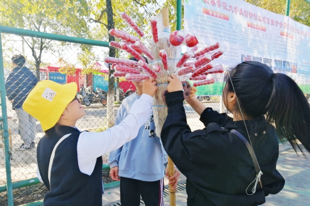 肩上扛着“草木棒子”,胸前挂着收款码,游走于人群之中,这是冰糖葫芦的销售方式,所卖冰糖葫芦中有山楂、圣女果、苹果、提子四种口味。冰糖葫芦是甜的,甜里却包裹着酸;冰糖葫芦是酸的,酸里却包裹着甜,一串串晶莹剔透的山楂红,是这个冬天最开胃可口的零食。关于糖葫芦或许都有一份仅属于自己的回忆,所以它总是酸甜参半的。“最初吃冰糖葫芦还是小时候,那时候是爷爷奶奶带着上街,总能够看到买冰糖葫芦的老爷爷老奶奶,看着一串串亮红色的吃的,总会闹着爷爷奶奶给我买,每次见到糖葫芦都会想上前去买,除了喜欢,可能就是习惯吧。”正在买冰糖葫芦的杨雨晴热情和笔者说到。