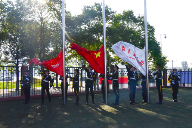他们总是最早来到田径场也是最晚离开的人,“为了今天这个重要的日子,我们也准备了很长一段时间,为的便是在出旗的时候能够展现的更加完美。当太阳升起,国旗便会在校园上空飘扬,国旗下的队伍也会永远一起担负保卫国旗的光荣与使命。”国旗护卫队队员冯俊康自豪地对笔者说道。