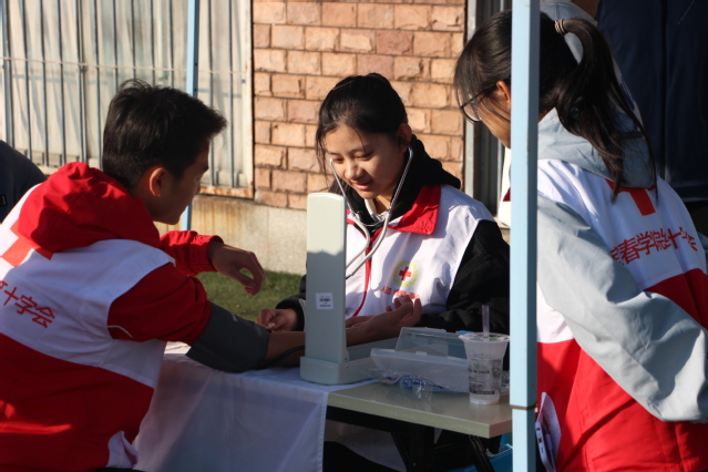 本站讯(化生学院 供稿)校运是一盒粉笔,运动健儿们借其肆意挥洒才能,在田径场上勾勒出了一幅幅精彩的画卷,又好比是跃动的音符一般,总会有一些弦外之音点缀着这首运动感十足的天籁。在我们的校运赛场上,有着这样一群与众不同的人,他们立身赛场之外,却同样渲染着校运的色彩,其中最艳丽的一笔,莫过于那一抹亮丽的鲜红。
