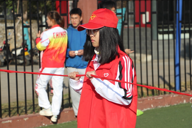 红色的马甲赋予了他们别样的使命。在整个会场上,他们伫立在跑道边缘,一条红丝绳将整个赛场维持的井然有序,骄阳和烈日都没有将他们撼动,他们就是每一年校运会的志愿者们。他们来自各个教学院的青年志愿者协会,“奉献、友爱、互助、进步”是他们坚守的宗旨。“算上今年,已经二十一届校运会了,只要校运会举办,我们就一定会在,我们的工作在别人的眼中就是“门神”,虽然这个称呼听起来有些奇怪,但是仔细一想也挺好,门神的职责就是守护、祈福,而我们要做的亦是如此,确保每一位运动员的安全,使其顺利参赛,并祝愿运动员们取得良好成绩,同时衷心地希望我们的第二十一届校运会能够圆满结束。”化生学院青年志愿者协会会长卢颖欣如是说道。笔者采访到她时,卢颖欣同学正在安排下一批的协会志愿者同学进行值班,看着会场上各校赛事正常进行,她的脸上洋溢着灿烂的微笑。志愿者们坚守下的无私奉献精神,为校运场上构筑成了一道坚固而又温暖的防线。