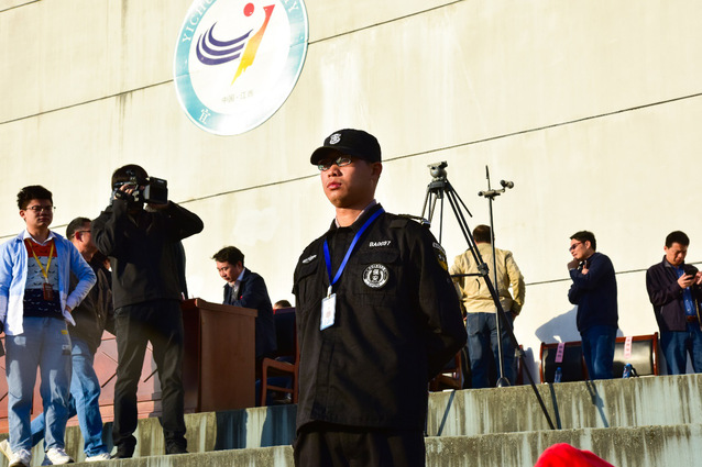 身着警卫制服的帅气身影偶尔映入眼帘,他们不是校运会的主角,却默默做着校运会安全的保驾护航人。