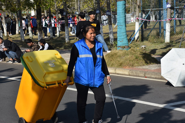 看似普通枯燥的工作,在他们认真负责的态度下也变得格外温馨。“清洁这个工作看似非常简单,但是想要把他做好,但是想要把它做好,必须要有足够的细心。近年来运动会场地的清洁工作也在减负,现在其实很多同学能理解并配合我们的工作,主动把垃圾带走。”明德物业清洁阿姨讲到。单丝不成线,独木不成林,赛场的干净,不仅有“蓝色”的力量,也有同学们的举手之劳。