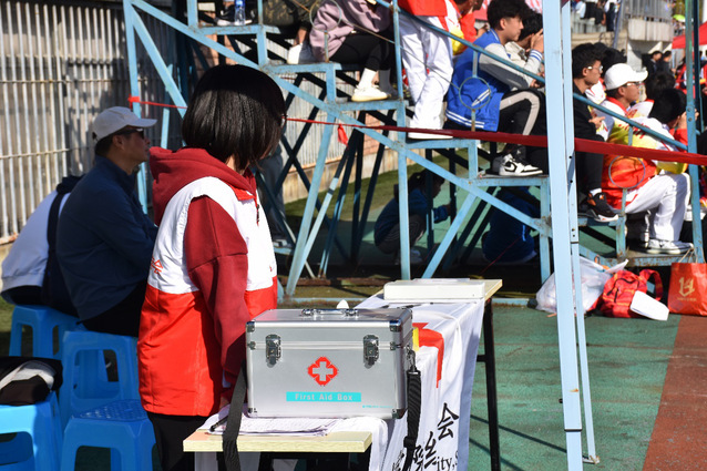 像天使一样守护着学生们的医护人员,肩背医疗箱、身穿白褂的他们,格外靓丽动人。“这份工作让我感到欣慰,活动中总能温暖别人,快乐自己!” 作为一名校红十成员的18级经管学院胡霞向记者如是谈到。为了切实保障校运会人身安全工作,赛前,beat365官网各院经过精细的统筹协调,组织成员参与应急救护培训。校运会期间,在各安置点放置可使用的医疗物品和医疗箱、氧气袋等一些最基本的抢救物品,并且多处安排了医务人员,让运动会各项工作有条不紊地进行。