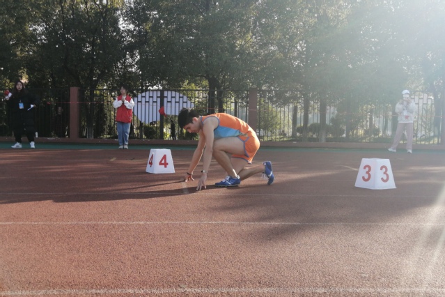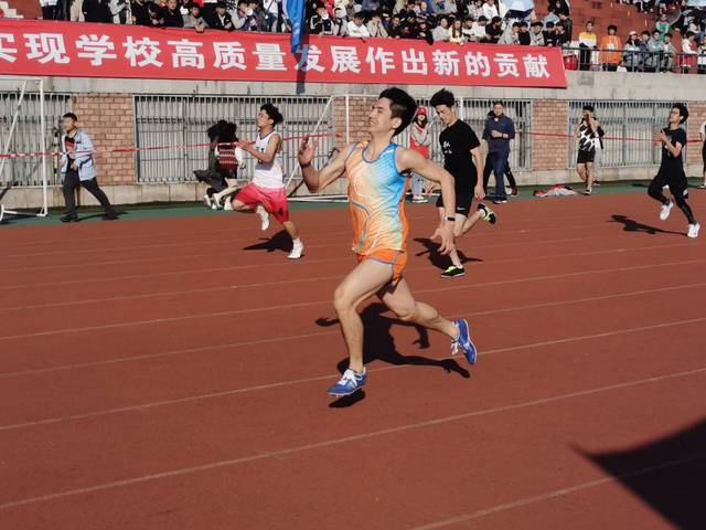 第三次踏上这战场,他仍是饱含激情,满怀期待,变得更加稳重、镇定,甚至会放松心情,缓解紧张。“转眼间,我已经成为这赛场上的老油条,和那些大一大二的一块儿比赛,总有种老了的感觉”,他哭笑不得说道,“不过这也给了我动力,我这个老骥还想在大三再拼搏一把”。因此,他始终坚持参加校运会赛前训练,不论寒风凛冽,烈日炎炎。所幸,成功都是留给有准备的人,认真坚持的人从不会被辜负,他亦是如此。在普通学生组男子4X400米决赛中,在他和同伴的共同拼搏下,经济与管理学院代表队以3分53秒54的成绩获得第二名。在普通学生组男子100米预赛中,他更是以第一的成绩顺利进入决赛,进行新的比拼,为集体争光。