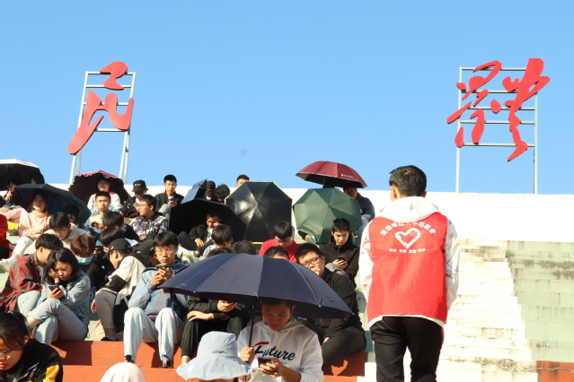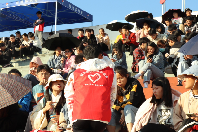 环保协会的会长李淑健说到“运动会期间会必定产生许多的垃圾,我们在看台上设立垃圾桶,同时也有干事在旁边的走道上督促同学们将手中的垃圾丢到垃圾桶中。正值运动会期间,我们环保协会更应该向大家宣传环保的理念,这是我们环保协会的职责所在。”让环保的风吹入运动场,让大学生环保理念的践行者和传播者。“我们希望这次活动并不只是停留在表面,而是真正可以留下些什么,让它变得更有意义”。运动员们在跑道上奔跑,在沙坑处跳跃,在圆圈处投掷,展现自我,大放光彩,而环保协会的成员们在看台处督巡,为运动会增添光彩。